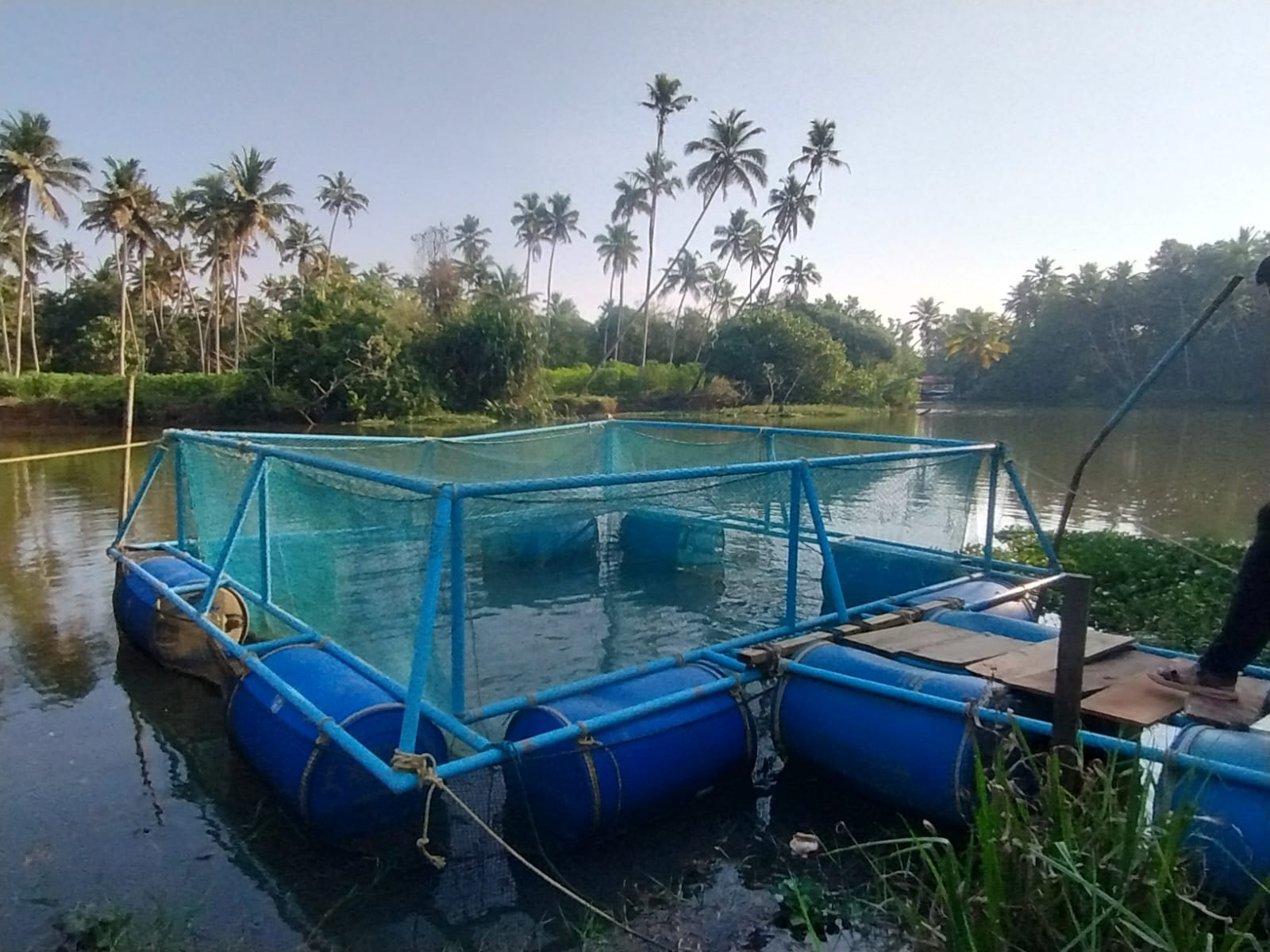 Grama Samrudhi's Fishery Unit (Cage Culture) - 3 Cages at Poovar, managed by Executive Committee Member Ms. Renjini, focuses on sustainable fish farming practices. The unit cultivates Karimeen (Pearl Spot) and other river fish species. Key features include: